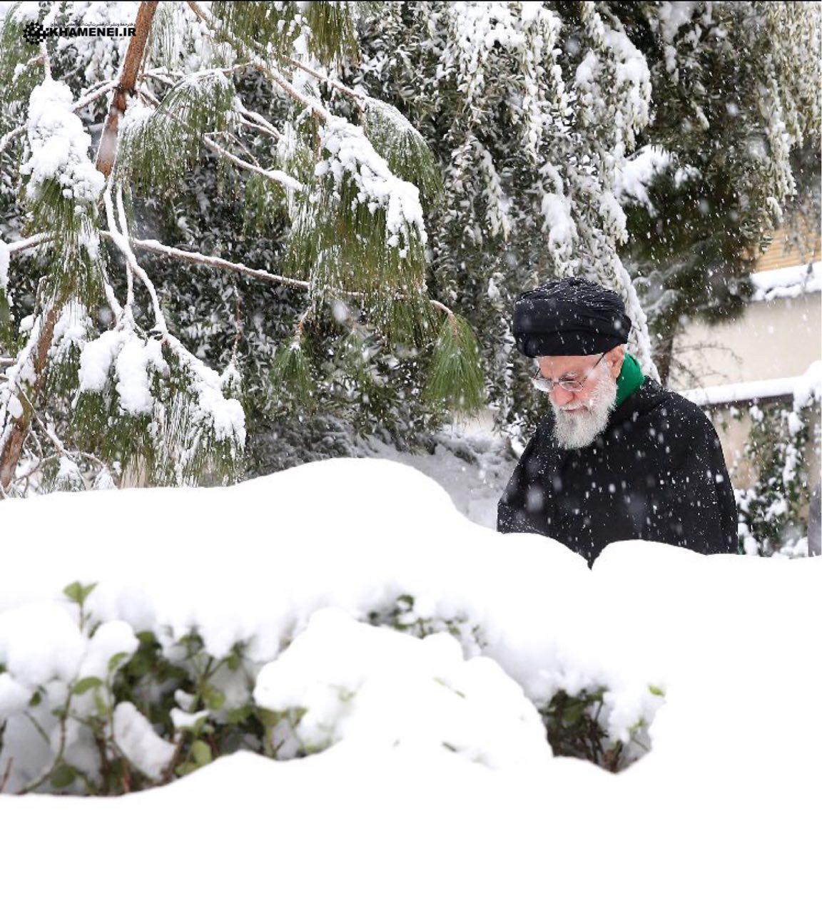 آیت الله خامنه ای در صبح برفی امروز (عکس)