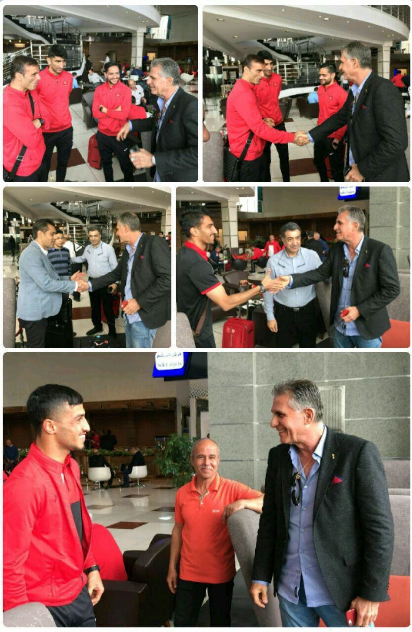 کارلوس کیروش امروز صبح در فرودگاه با بازیکنان پرسپولیس روبرو شد.کاروان تیم پرسپولیس صبح امروز که قصد حرکت به امارات برای دیدار مقابل الوصل را داشت، در CIP فرودگاه امام با کارلوس کیروش سرمربی تیمملی روبرو شد و بازیکنان هر کدام خوشوبشی کوتاه با کیروش داشتند.