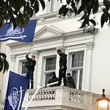 بر اساس گزارش رسانهها همچنین عنوان شد، این افراد با عنوان حمایت از بیت سید صادق شیرازی و اعتراض به دستگیری سید حسین شیرازی با ورود به محوطه و بالکن سفارت ایران در لندن پرچم ایران را پایین کشیده و پرچم گروه خود را به نمایش درآوردند. حمله کنندگان همچنین شعارهایی علیه مقامات ایران و نیز شعارهایی شامل لعن بر عایشه، ابوبکر، عمر و عثمان سر دادند.