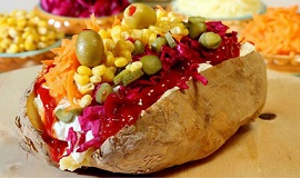 این غذا یک غذای ترکیه ای محسوب می شود که طعم و شکل جالبی دارد. البته در مغازه های ترکیه داخل سیب زمینی را به میل مشتری پر می کنند مثل پاستا، زیتون، ترشی، تخم مرغ و سالاد الویه و مواد گفته شده بالا.