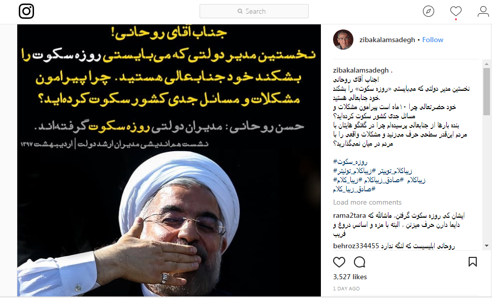 زیباکلام خطاب به روحانی: چرا ۱۰ ماه است پیرامون مشکلات و مسائل جدی کشور سکوت کرده‌اید؟