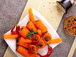 داخل هویج ها را با مخلوط گوشت پر کنید.