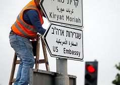 با نزدیک شدن زمان افتتاح سفارت جدید آمریکا در اسرائیل در شهر قدس (بیتالمقدس/ اروشلیم) تابلوهای این سفارتخانه در خیابان نصب شد. سفارت جدید ایالات متحده آمریکا در محل کنسولگری این کشور در قدس افتتاح خواهد شد.