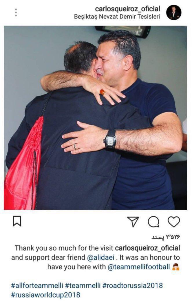 تمجید اینستاگرامی‌ کی روش از علی دایی پس از حضور در ترکیه: «خیلی متشکرم برای این ملاقات و حمایت دوست عزیز؛ افتخاری هست که تو در اینجا با تیم ملی هستی»
