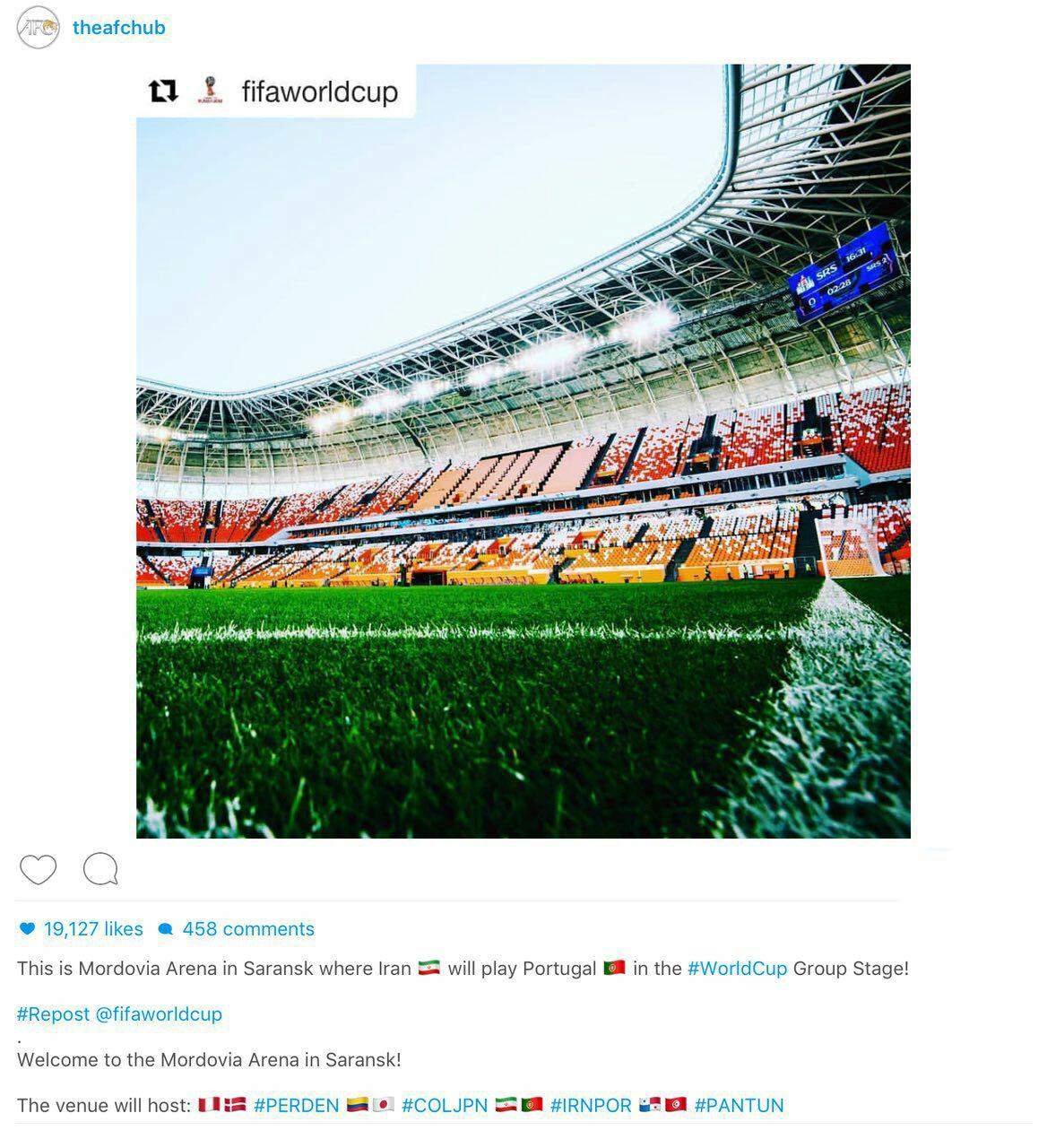 در صفحه اینستاگرام AFC عکسی از محل برگزاری بازی ایران و پرتغال در جام جهانی روسیه منتشر شد.