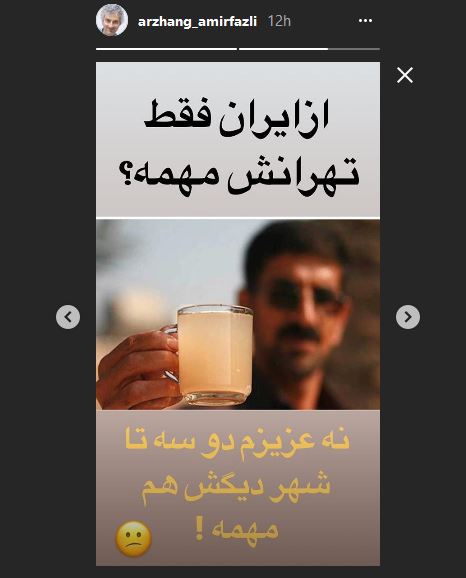 استوری ارژنگ امیرفضلی برای وضع آب خوزستان (عکس)