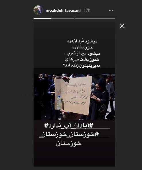 استوری مژده لواسانی برای وضعیت آب خوزستان (عکس)