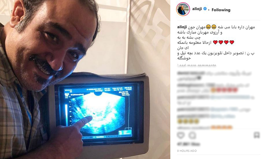 علی اوجی با انتشار عکسی از مهران غفوریان در اینستاگرامش نوشت: مهران داره بابا مى شه / مهران جون و آرزوى مهربان مبارك باشهپ ن : تصوير داخل تلويزيون يك عدد بچه تپل و خوشگله