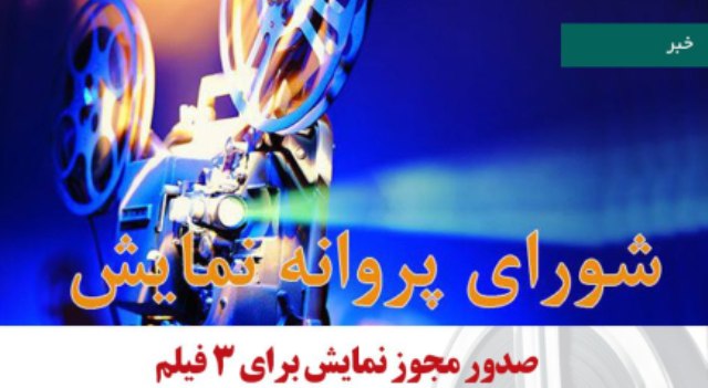 شورای پروانه نمایش فیلم های سینمایی برای 3 فیلم مجوز نمایش صادر کرد.