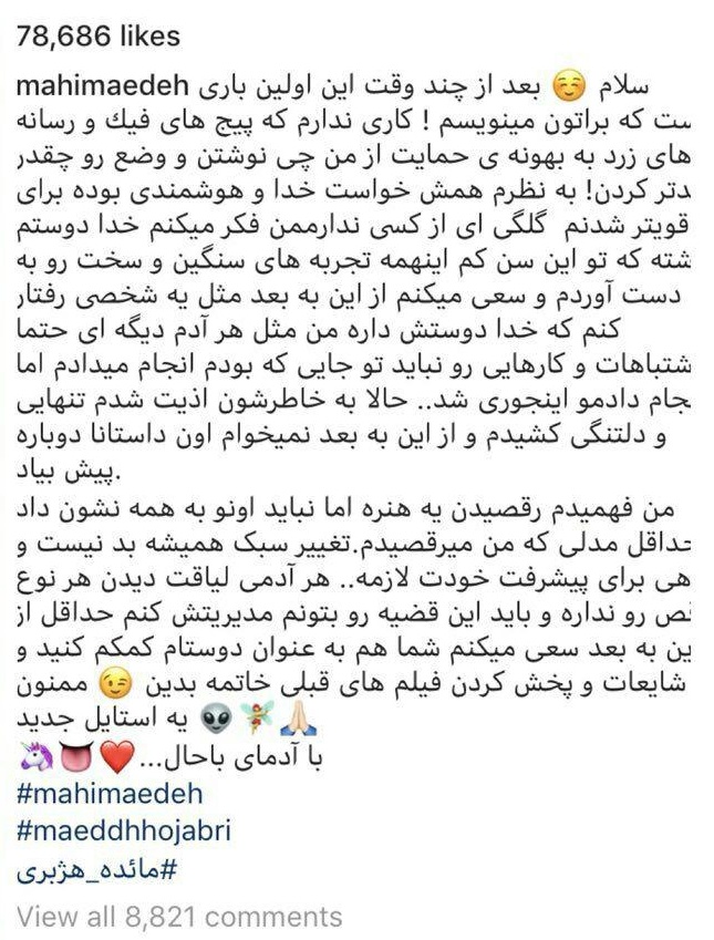 مائده هژبری در آخرین پست اینستاگرامش نوشت: