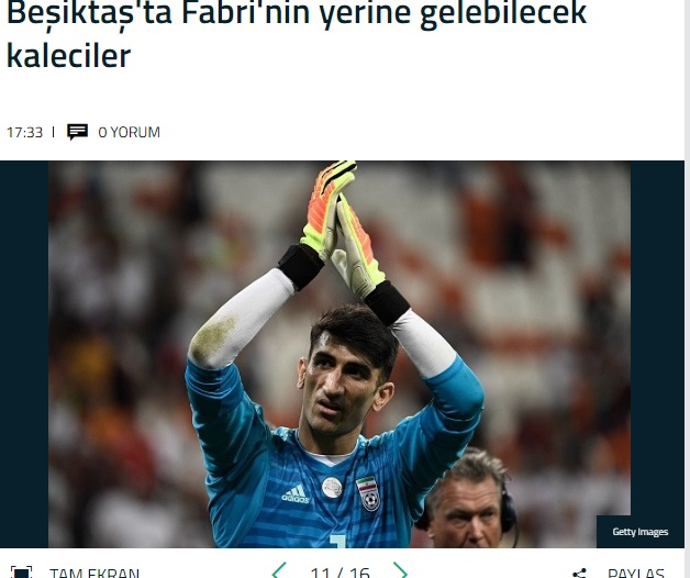 براساس خبر رسانههای ترکیه بشیکتاش که به دنبال جایگزین مناسب برای فابری است، قصد دارد دروزاهبان تیم ملی ایران در جام جهانی را که نمایش قابل قبولی در روسیه داشت را به خدمت بگیرد. البته جزو گلر پرسپولیس چند دروازهبان دیگر از جمله براوو و اوچوا دروازهبان مکزیک هم لیست خرید سیاه و سفیدهای استانبول دیده میشود.