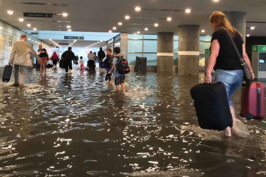 بارش شدید باران در سراسر سوئد همزمان با موج گرمای بی سابقه، ایستگاه مرکزی قطار اوپسالا چهارمین شهر بزرگ این کشور در شمال استکهلم را به استخر شنا تبدیل کرد و بسیاری نیز از غیبت ماموران پلیس و امدادی ابراز حیرت کردند.