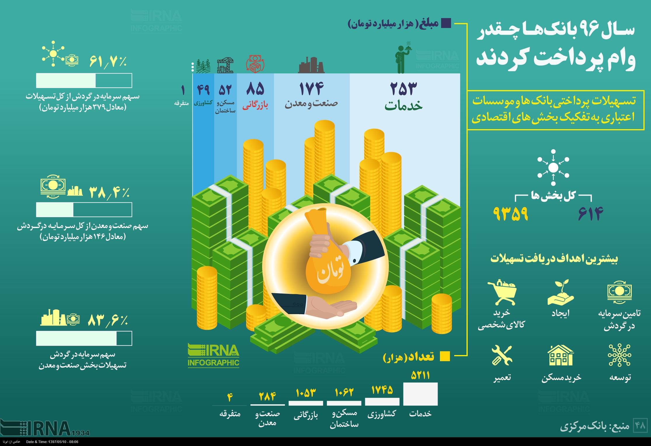 سال 96 بانک ها چقدر وام پرداخت کردند؟