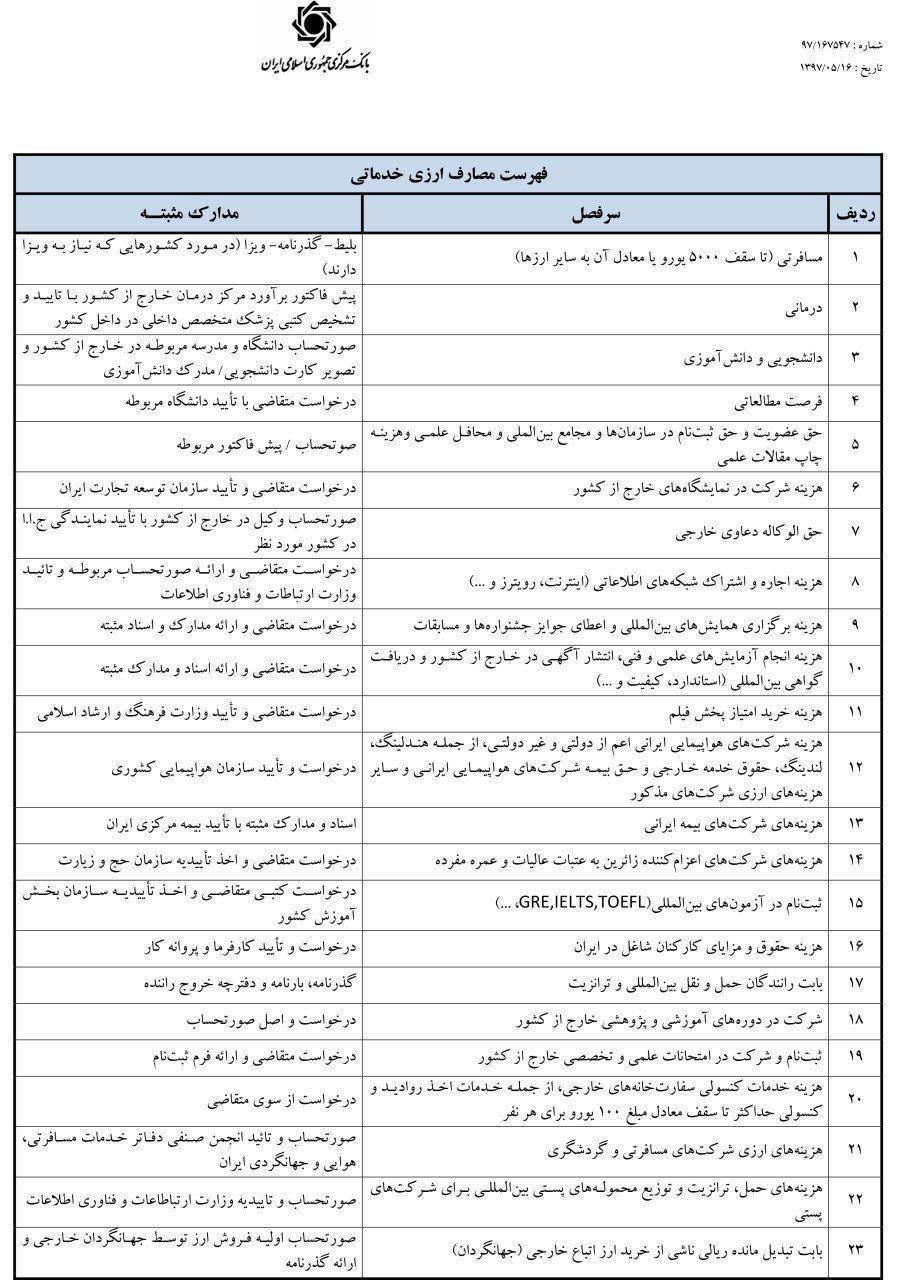 لیست نهایی 23 فعالیت مجاز صرافی‌ها (جدول)