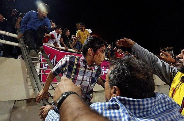 تماشاگران دو تیم استقلال خوزستان و پرسپولیس در اواخر نیمه اول این دیدار با هم درگیر شدند.