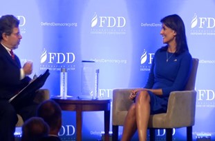 «نیکی هیلی»، سفیر آمریکا در سازمان ملل متحد و «برایان هوک»، دستیار ویژه وزیر خارجه آمریکا در امور ایران روز سه‌شنبه در نشستی که لابی ضد ایرانی موسوم به «بنیاد دفاع از دموکراسی‌ها» تشکیل داده بودند، سخنرانی کردند.