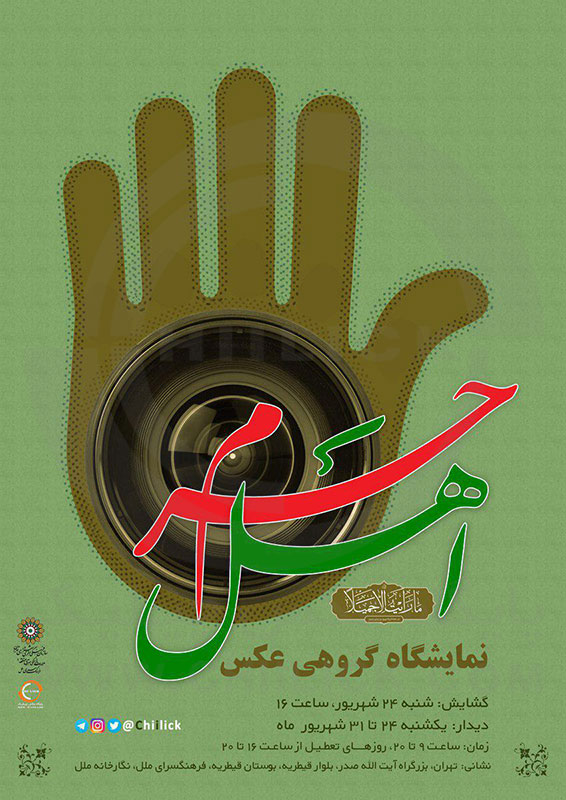 نمایشگاه گروهی عکس “اهل حرم” ساعت ۱۶ روز شنبه ۲۴ شهریورماه در محل نگارخانه ملل گشایش یافته و تا ساعت ۲۰ ادامه خواهد یافت.