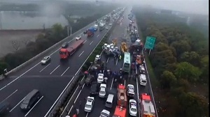 در این حادثه که ساعت ۱۹:۲۰ روز گذشته (شنبه) به وقت محلی اتفاق افتاد، راننده یک دستگاه کامیون کنترل آن را از دست داد و با ۳۱ خودروی دیگر برخورد کرد.
