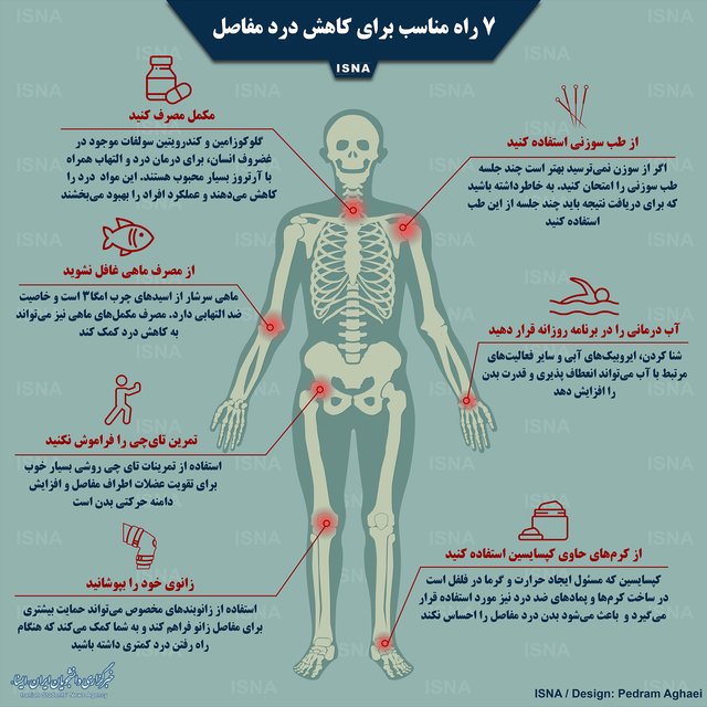 در این اینفوگرافی هفت راهکار ساده، طبیعی و خانگی برای کاهش درد مفاصل پیشنهاد شده است.