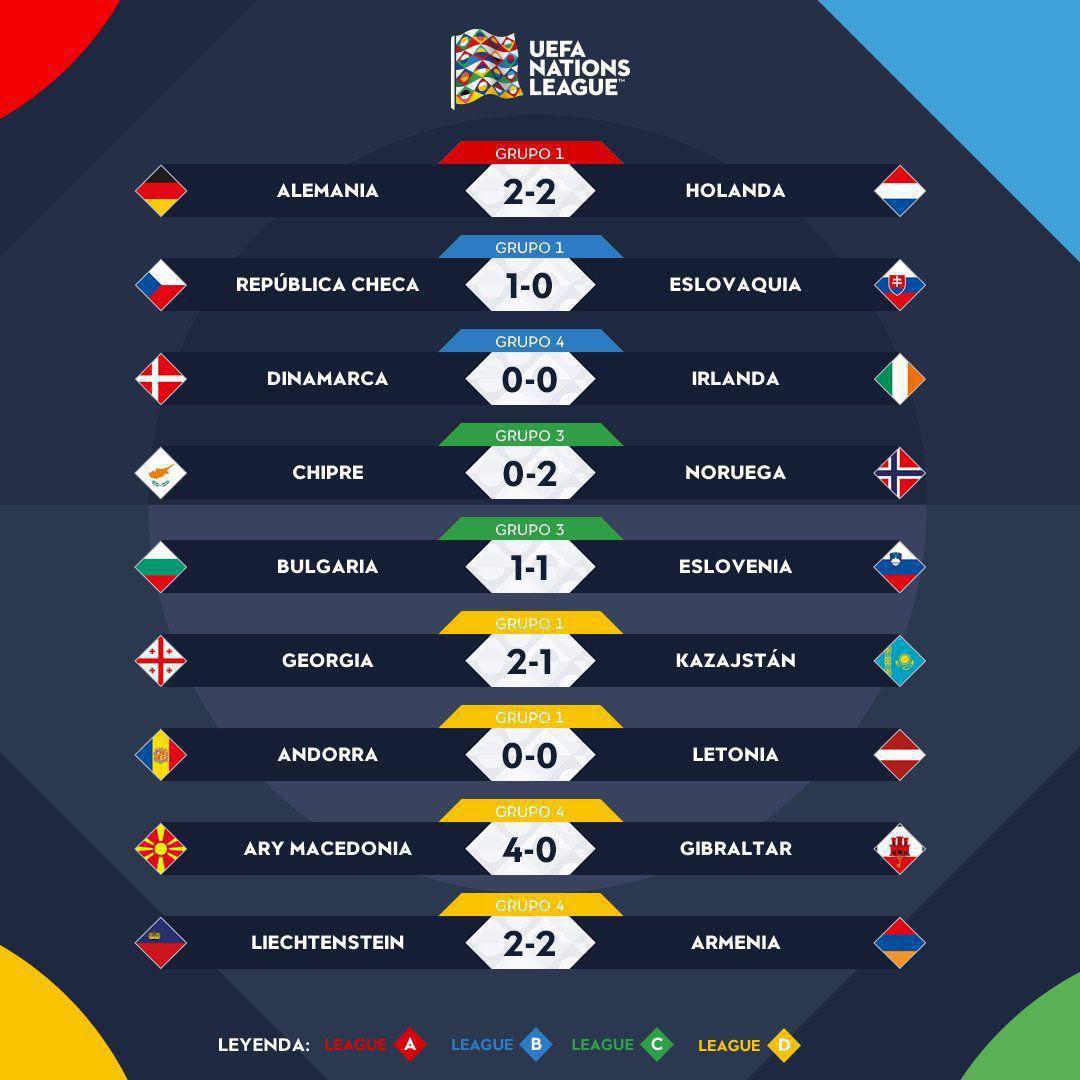 نتایج بازی‌های دیشب لیگ ملت های اروپا (عکس)