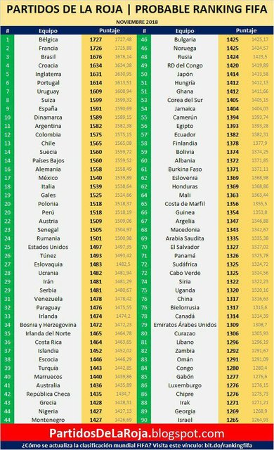10 تیم برتر رده بندی فیف به شرح زیر هستند: