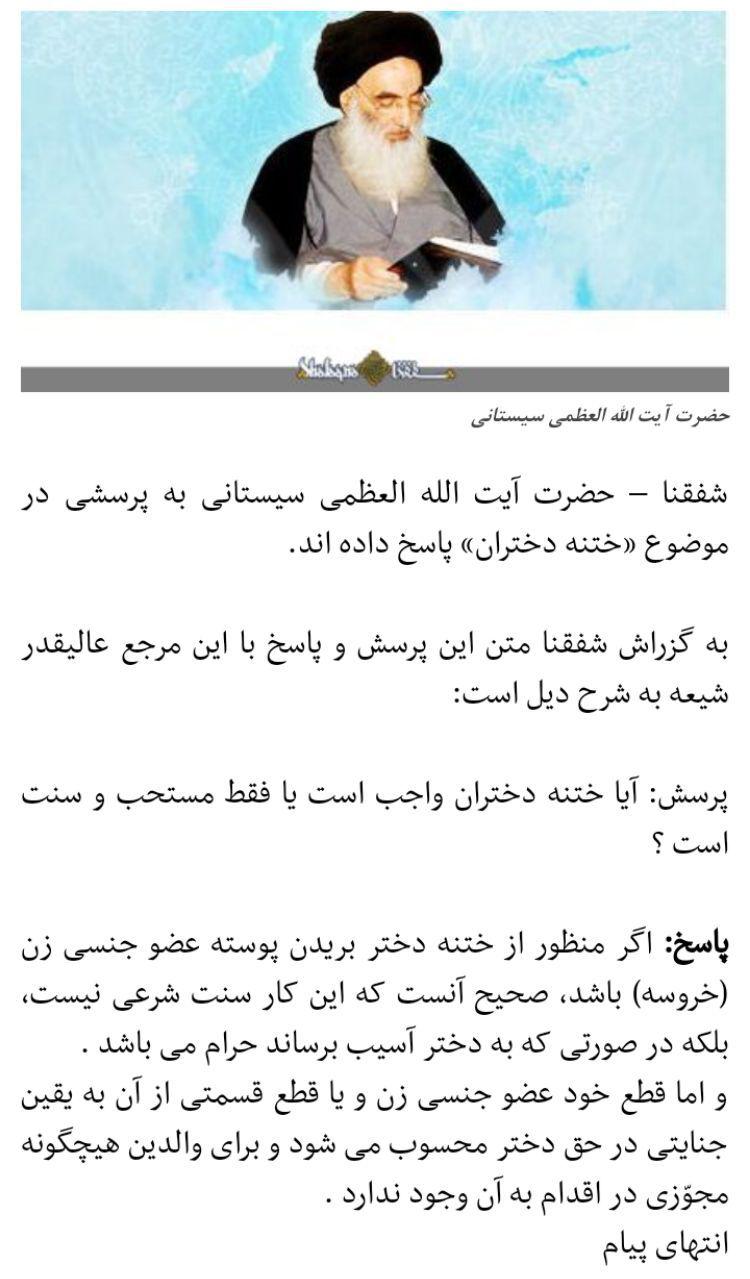 فتوای آیت الله سیستانی درباره ختنه دختران