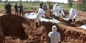 خبرنگار سانا افزود، تیم دفاع مدنی و هلال احمر سوریه ۱۰۱ جسد را از این گورها بیرون کشیدهاند که آثار شکنجه قبل از اعدام روی بدن آنها نمایان بودهاند. تلاش برای بیرون آوردن اجساد دیگر نیز ادامه دارد.