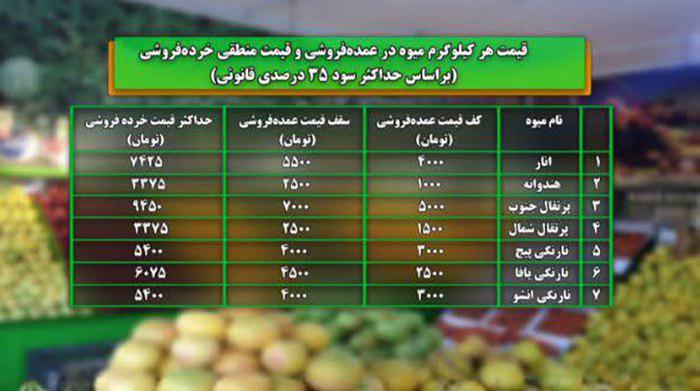 نرخ فروش میوه های شب یلدا براساس جدول زیر است