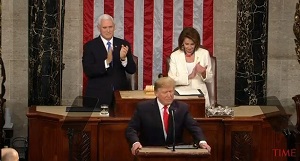 ترامپ ادامه داد: این وضعیت بسیار خوب به نظر میرسد. کشور ما در وضعیت خوبی قرار دارد و اقتصاد ما بیش از هر زمان دیگری در حال شکوفایی است. روز جمعه اعلام کردم که سه هزار و ۴۰۰ شغل جدید فقط در ماه گذشته ایجاد کردیم که از میزان مورد انتظار تقریباً دو برابر بیشتر بود. معجزهای اقتصادی در ایالات متحده در حال رخ دادن است و تنها موضوعی که میتواند آن را متوقف کند، اظهارات و سیاستها احمقانه ما و یا بررسیهای حزبی احمقانه است. اگر بنا به وجود صلح و آرامش در قوه مقننه باشد، نمیتوان در امر بررسیها شاهد جنگ بود. ما باید در داخل متحد باشیم تا بتوانیم دشمنان خود را در خارج از پا در بیاوریم. دوره جدیدی که بر مبنای همکاری است، میتواند آغاز شود.