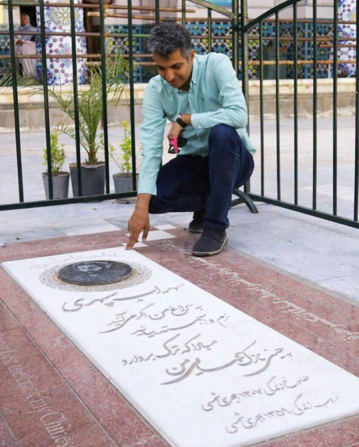 عادل فردوسی پور در سفری که به کاشان رفته است بر سر مزار سهراب سپهری حاضر شد.