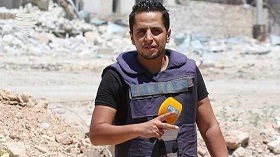 صهیب مصری خبرنگار شبکه الکوثر هنگام پوشش عملیات جبهه شمال غرب استان حماه سوریه بر اثر اصابت گلوله به ناحیه سر و سینه به شدت زخمیشد.