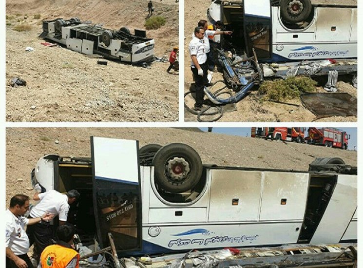 واژگونی اتوبوس در جاده زاهدان - زابل/ یک کشته و 8 مصدوم (+عکس)