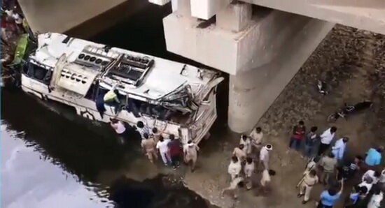 در حادثه سقوط یک دستگاه اتوبوس به داخل کانال آب در هند دست کم ۲۹ تن کشته شدند.