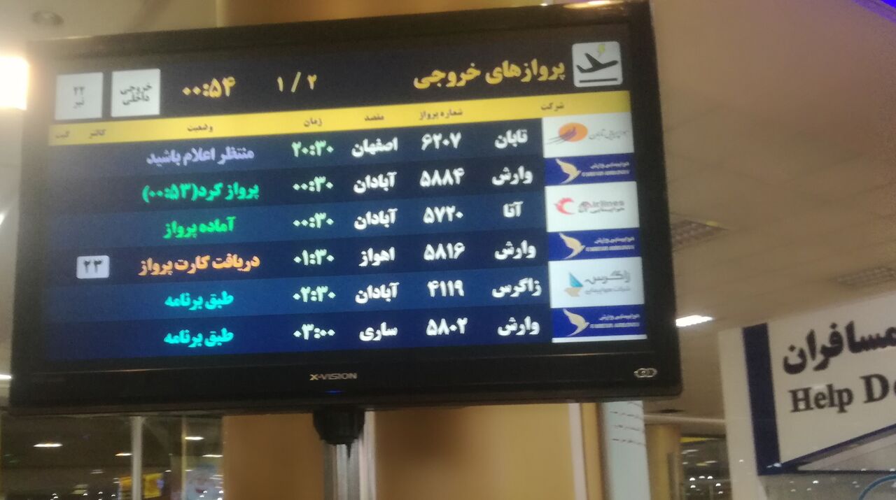 مسافران پرواز ۶۲۰۷ هواپیمایی تابان مشهد به اصفهان به دلیل تاخیر، ۶ ساعت در فرودگاه شهید هاشمی نژاد سرگردان شدند.