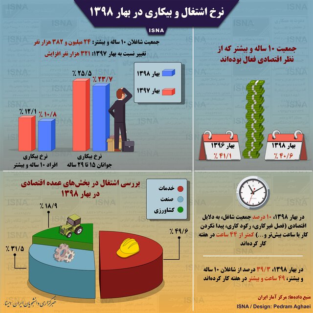 وضعیت اشتغال و بیکاری در بهار 98 (اینفوگرافی)