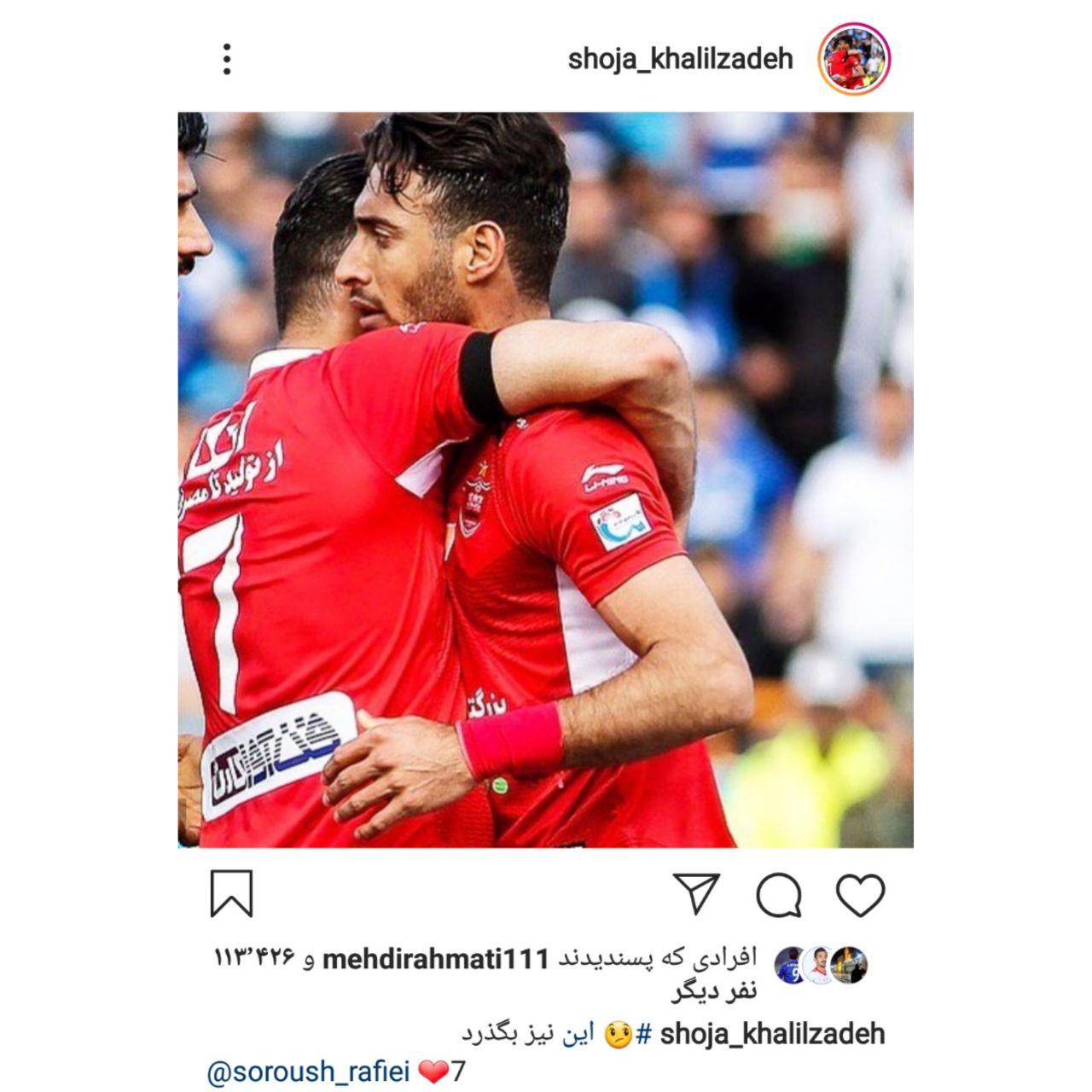 در همین حال شجاع خلیل زاده مدافع پرسپولیس و همبازی صمیمی سروش رفیعی که در بیشتر اردوهای سرخ پوشان با او هم اتاق است در این باره نوشت: «این نیز بگذرد»