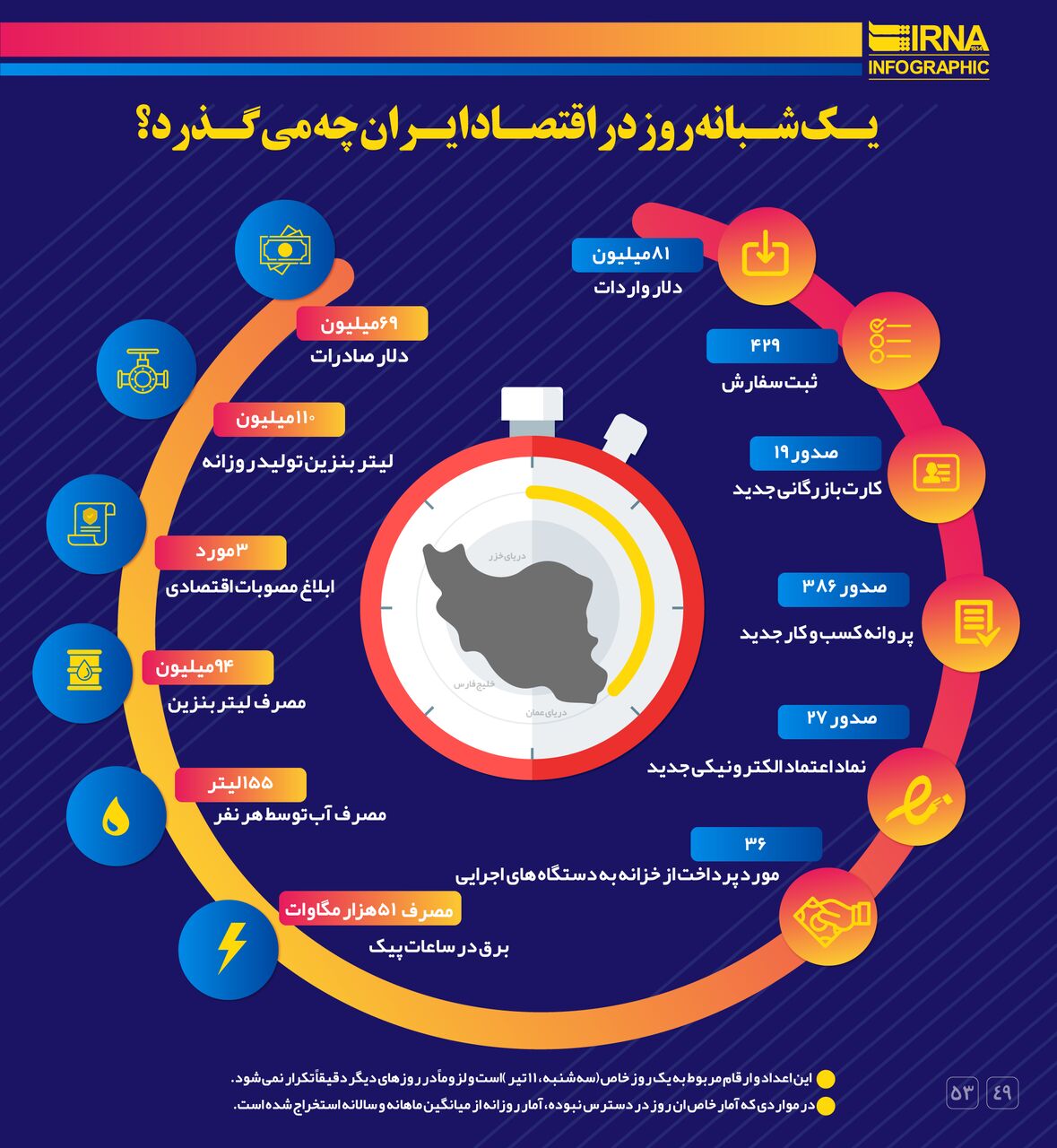 یک شبانه روز در اقتصاد ایران چه می گذرد؟ (اینفوگرافی)