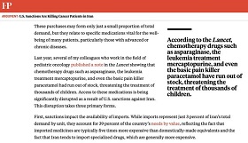 به گزارش ایسنا، محمدجواد ظریف، وزیر امور خارجه کشورمان در توییتی نوشت: لازم نیست تنها از من بشنوید. فارین پالیسی در گزارشی به تاثیرات تروریسم اقتصادی دولت دونالد ترامپ بر روی ایرانیان پرداخته و شرح داده که این تحریمها بر افرادی که به تولید دارو برای بیماران سرطانی مشغول هستند، تاثیر مستقیم گذاشتهاند.
