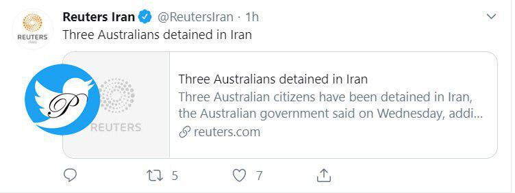 به گزارش توئیت پرس، اطلاعیه وزارت خارجه وتجارت استرالیا بعد از انتشار گزارشی در تایم رسانهای شد که در آن از بازداشت دو زن انگلیسی-استرالیایی و دوست پسر یکی از آنها در ایران خبر داده بود.