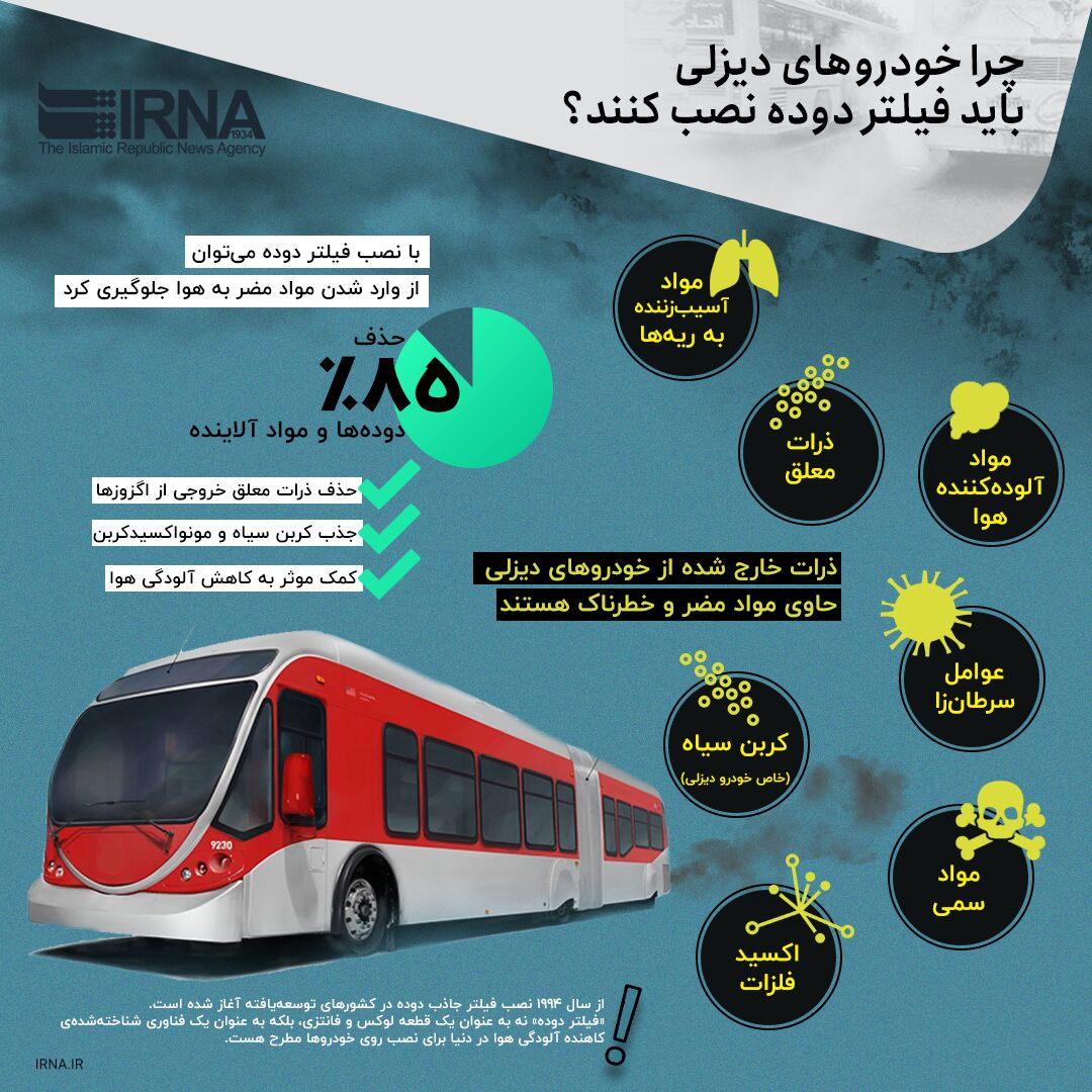 اینفوگرافی/ چرا خودروهای دیزلی باید فیلتر دوده نصب کنند؟