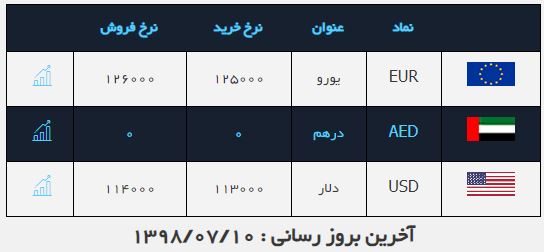 قیمت خرید دلار در صرافیهای بانکی در ساعت ۱۳ امروز ۱۱ هزار و ۳۰۰ تومان و نرخ فروش ۱۱ هزار و ۴۰۰ تومان بود، نرخ خرید هر یورو نیز ۱۲ هزار و ۵۰۰ تومان و فروش به ۱۲ هزار و ۶۰۰ تومان رسید.
