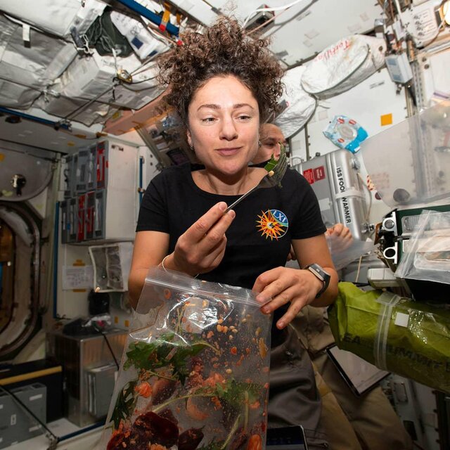 به گزارش عصر ایران به نقل از ایسنا، در این تصویر "جسیکا میر"(Jessica Meir) فضانورد مستقر در "ایستگاه فضایی بینالمللی"(iss) قابل مشاهده است که در دستان خود "خردل سبز میزونا" دارد.
