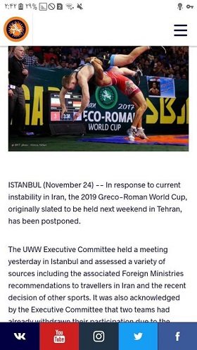 کمیته اجرایی اتحادیه جهانی کشتی برگزاری رقابتهای جام جهانی کشتی فرنگی در ایران را لغو کرد.