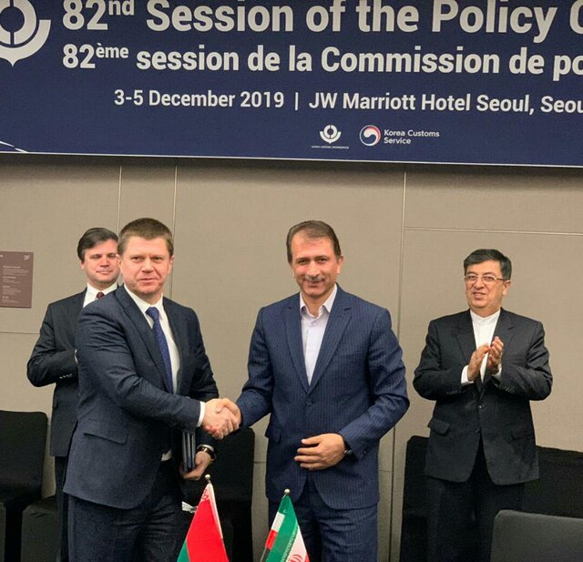 هشتاد و دومین اجلاس کمیسیون سیاستگذاری سازمان جهانی گمرک در کره جنوبی در حال برگزاری است که در حاشیه این اجلاس، ایران و بلاروس برای ارتقای تجارت متقابل موافقتنامه امضا کردند. موافقتنامه در راستای تشکیل منطقه آزاد تجاری موقت ایران و کشورهای اورآسیا است.