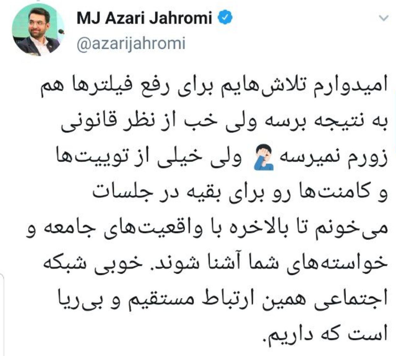وزیر ارتباطات: زورم به رفع فیلتر نمی‌رسد
