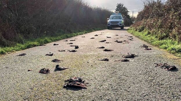 به گزارش ایسنا، پلیس ولز گفته است که لاشه خونین ۲۲۵ سار در جادهای در "انگلسی"، شهرستانی در شمال ولز دیده شده است.