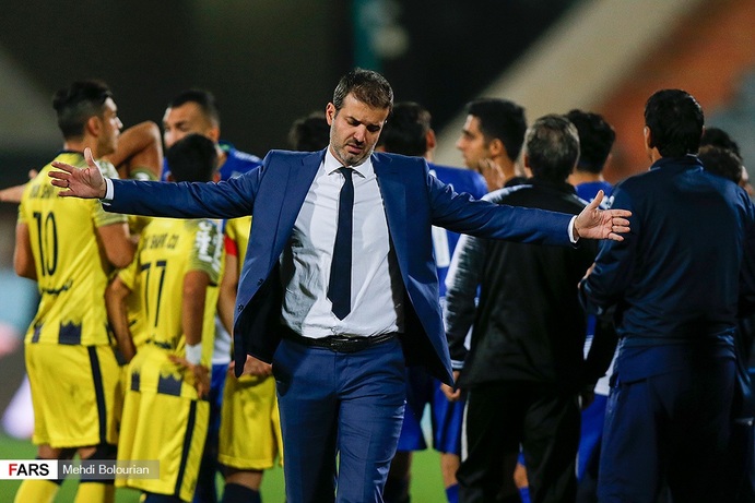 آندره آ استراماچونی در همان لوکیشنی که چند دقیقه قبل از بازی با شاهین بوشهر، یک پیام تصویری در صفحه شخصی همسرش منتشر کرده بود، این بار در یک گفت و گوی تلویزیونی شرکت کرد.