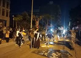جوانان معترض هم چنین خیابان اصلی الحمرا و خیابان فرعی نزدیک بانک مرکزی را با آتش زدن لاستیک و سطل های آشغال و بلوک های سیمانی بستند که نیروهای نظامی و ضد شورش برای باز کردن مسیر دخالت و به طرف آنان گاز اشک آور پرتاب کردند.
