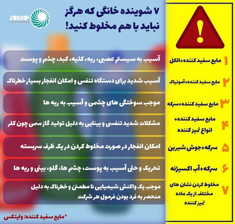 7 شوینده خانگی که هرگز نباید باهم مخلوط کنید (اینفوگرافیک)
