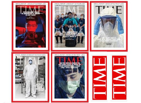 هفتهنامه تایم جدیدترین شماره خود را با پنج عکس روی جلد متفاوت برای ادای احترام به کارکنان خط مقدم مبارزه ویروس کرونا منتشر کرد.